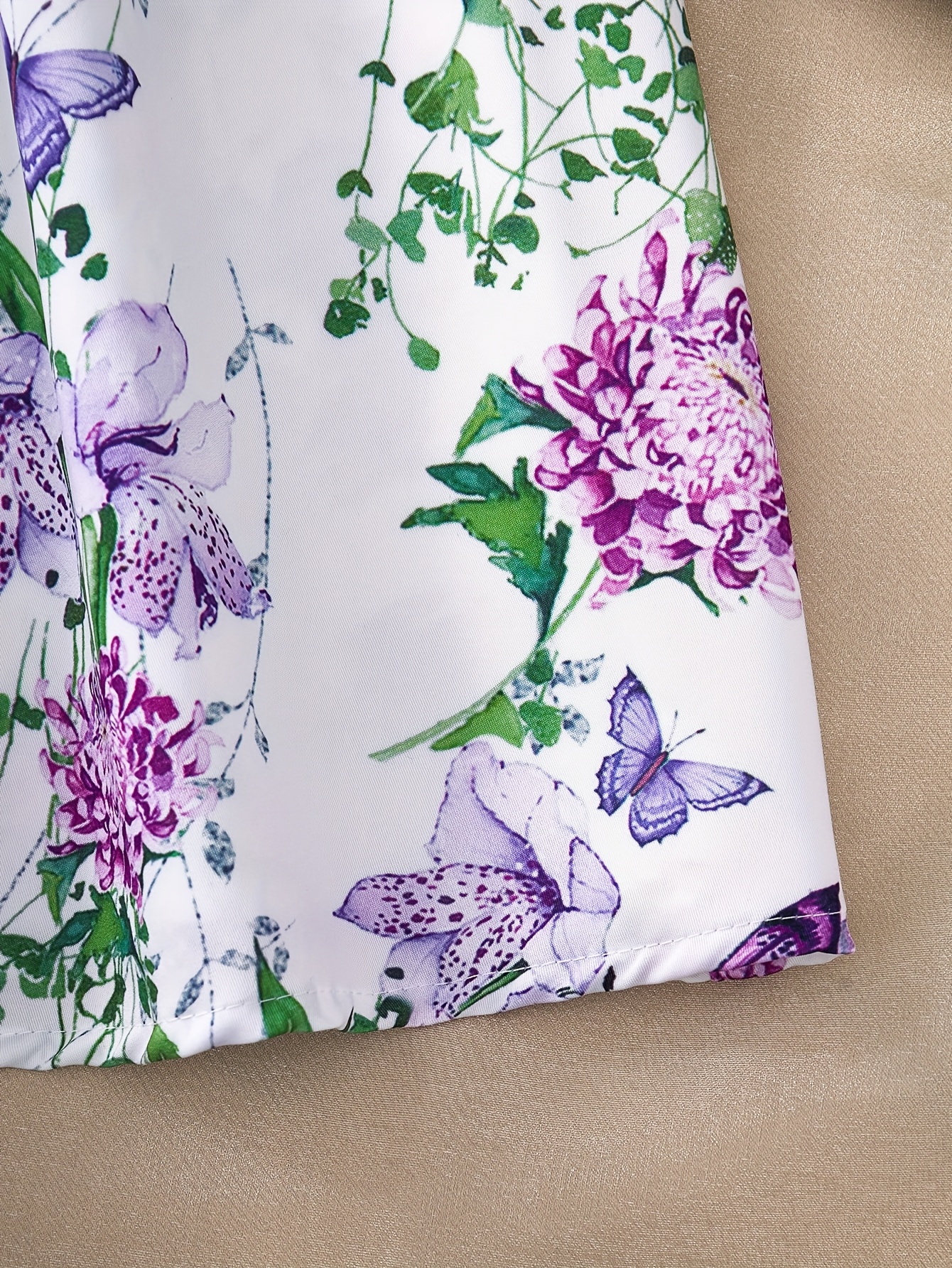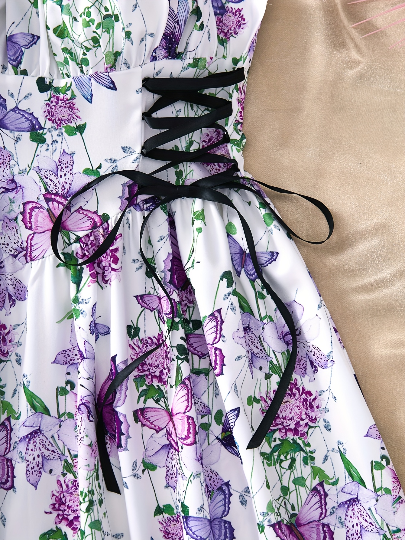 [Elegant Floral Dress] Elegant Floral A-Line Dress | Butterfly Accents, Adjustable Cross Straps, Ruched Waist, Perfect for Beach, Vacation, and Party Wear