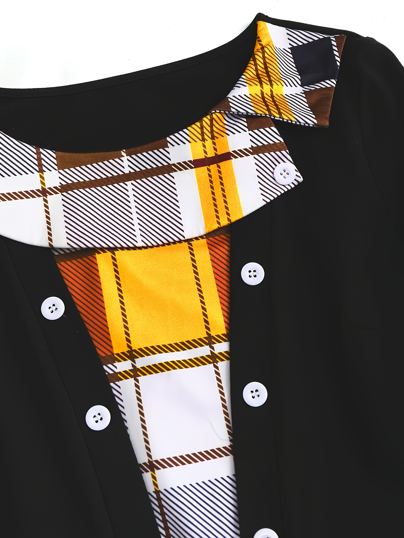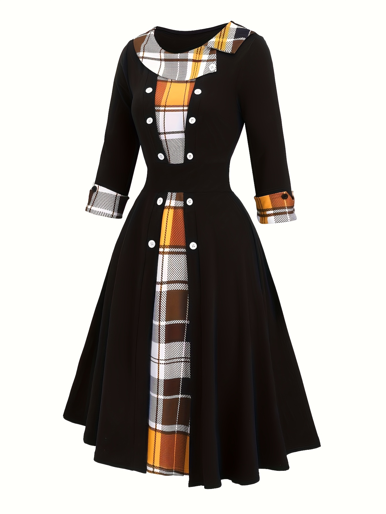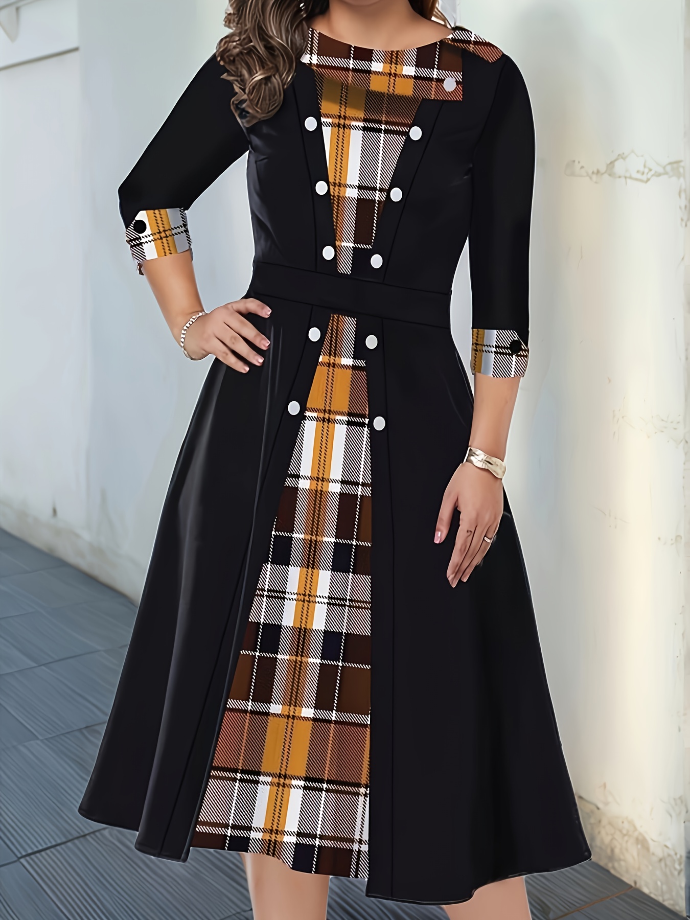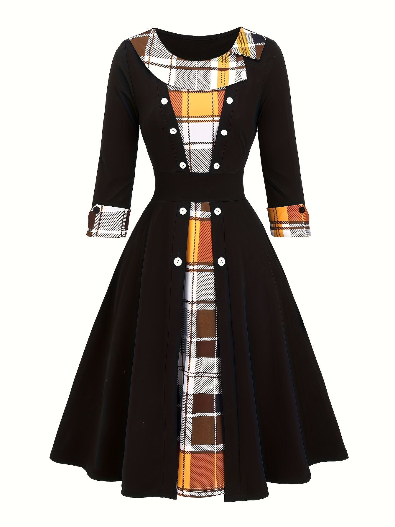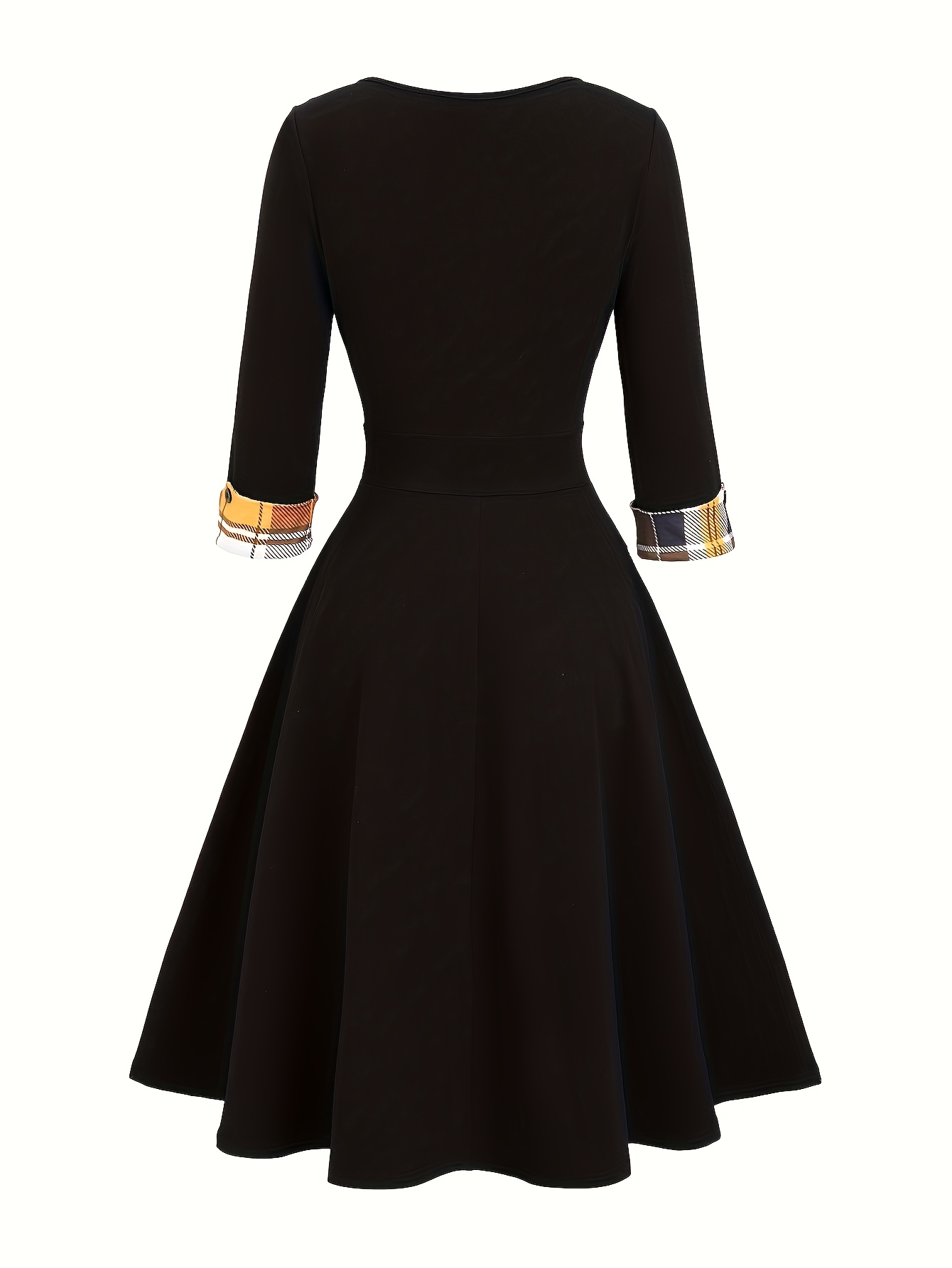 Patchwork Checkered Faux Two-Piece Vintage Dress
