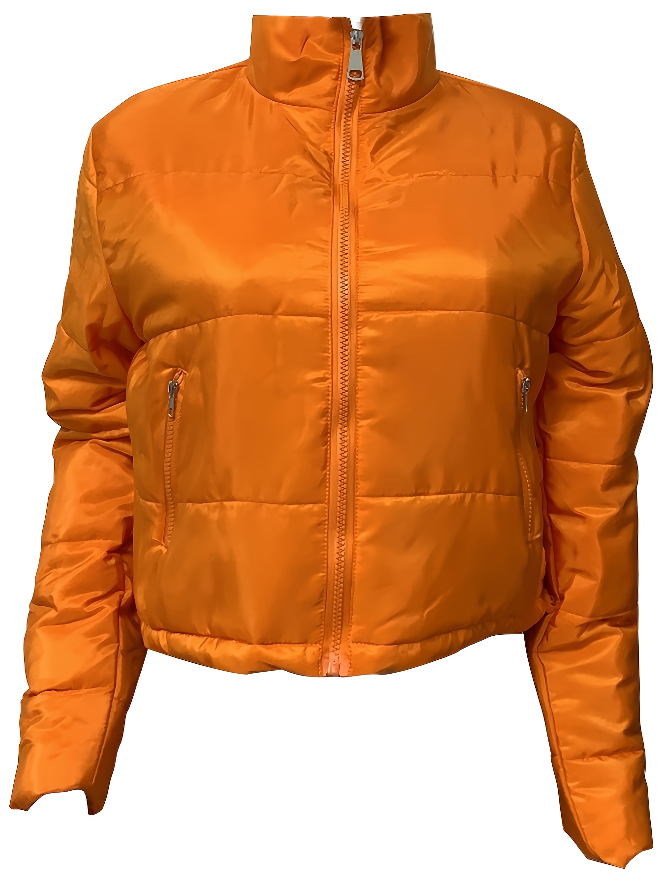 Women'S Stylish Yellow Puffer Jacket - Casual Long Sleeve, Short Length, Zip-Up with Pockets, Perfect for Winter Fashion, Winter Fashion Jacket|Zipup Jacket|Padded Jacket, Yellow Jacket/coat Women, Winter Jacket Women, Coat For Women