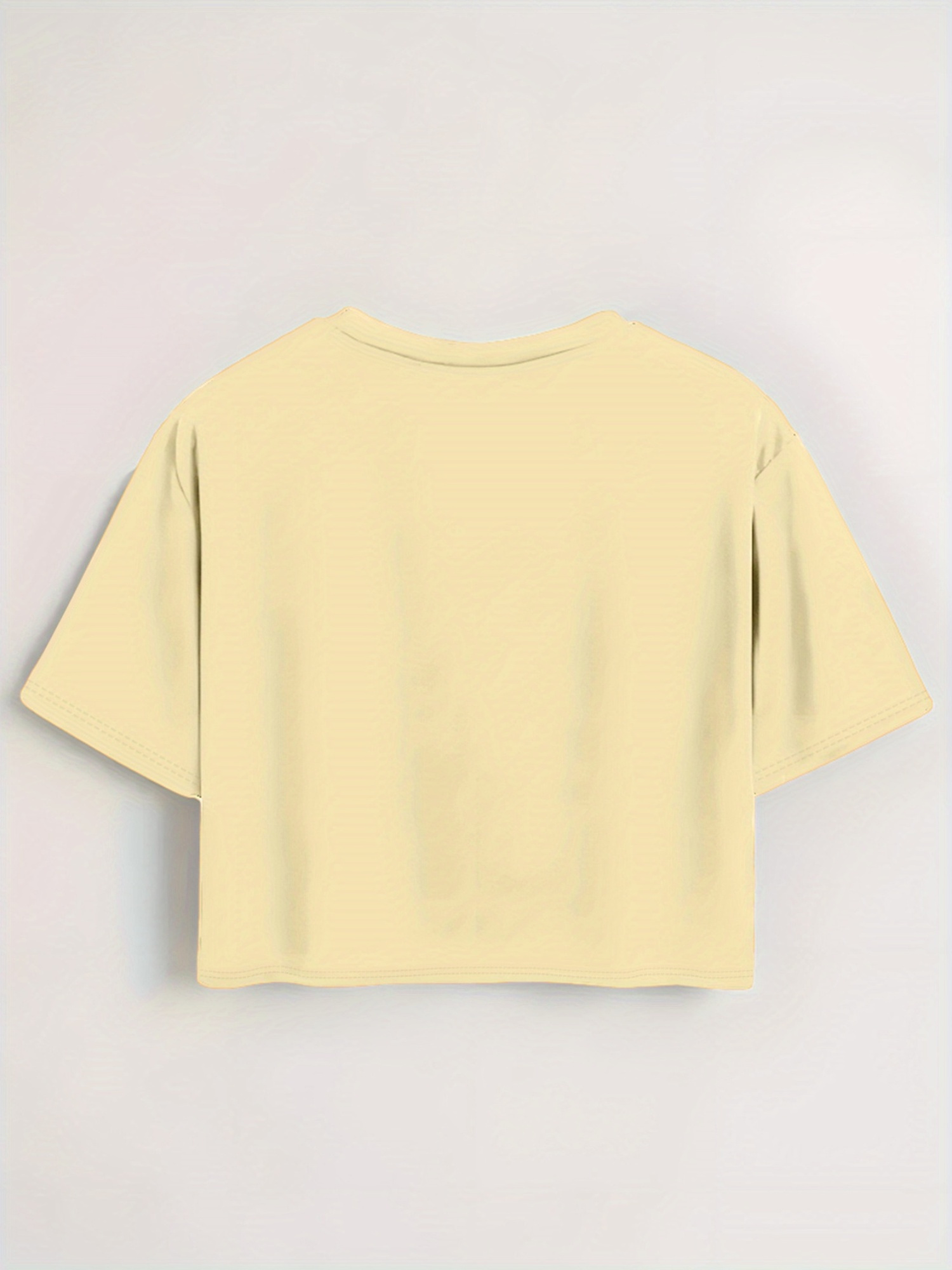 Women'S Slim Fit Bow Print Crop Top T-Shirt - Short Sleeve Crew Neck Casual Tee, Lightweight & Breathable for Spring/Summer Outfits, Machine Washable, Everyday Fashion, Everyday Tshirt | Bow Print Shirt | Glossy Texture