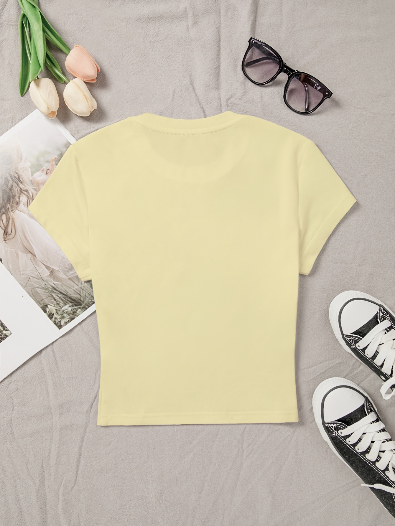Women'S Camo Print T-Shirt with "98" Design - Casual Short Sleeve Crew Neck Top, Light Yellow, Spring & Summer Fashion, Casual Wear|Camouflage Print|Lightweight Fabric