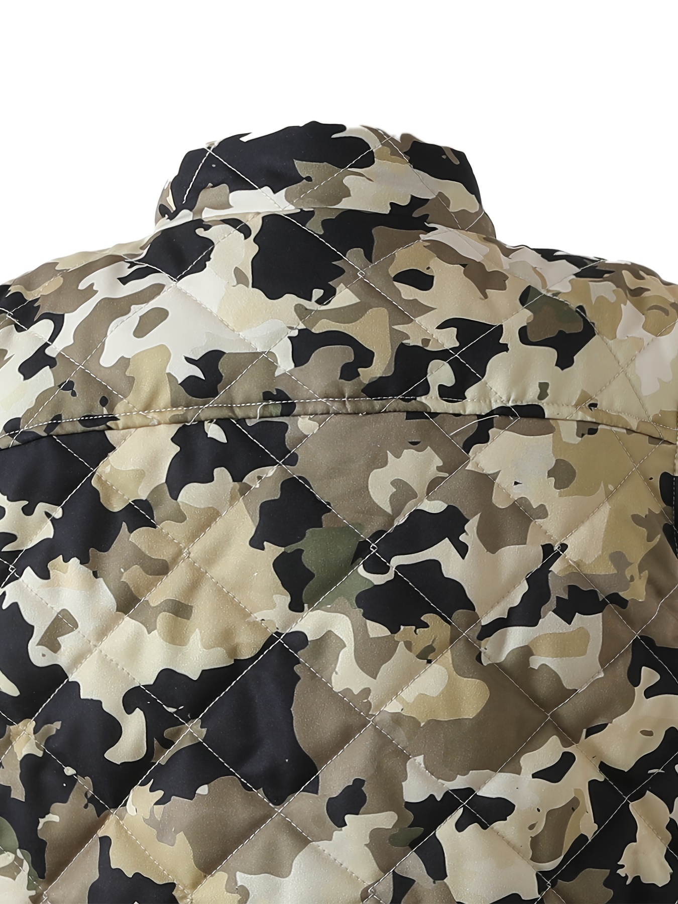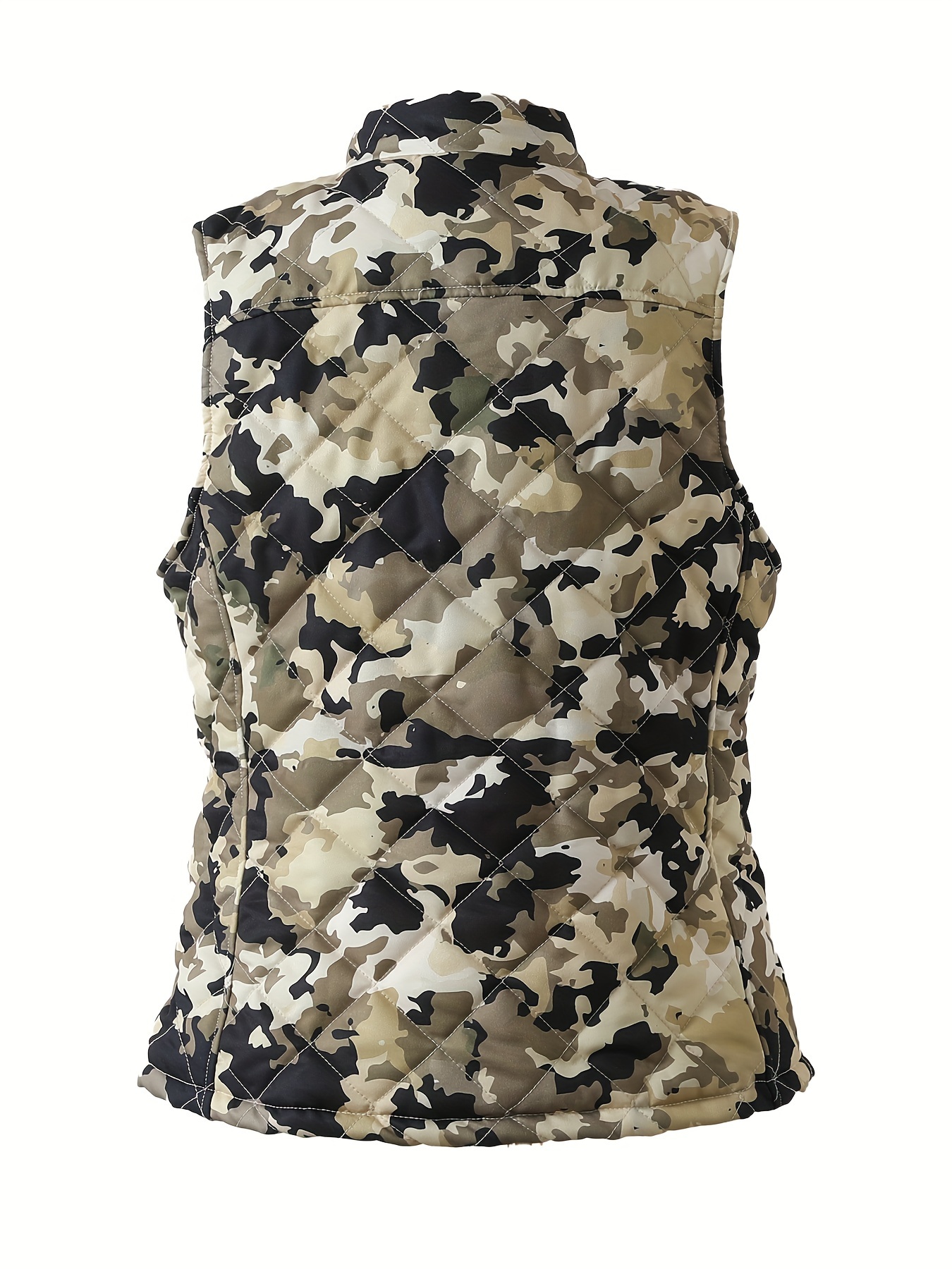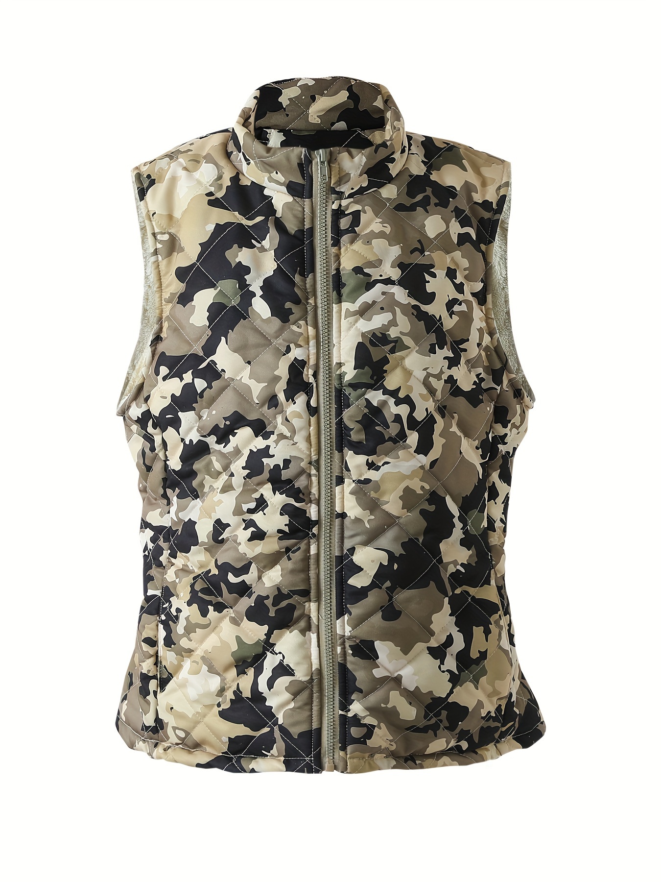 Women'S Lightweight Quilted Zip-Up Vest - Sleeveless, Stand Collar, Camouflage Print, Casual Style, Non-Stretch Fabric, Perfect for Fall/Winter, Casual Wear Vest|Quilted Vest|Zippered Vest